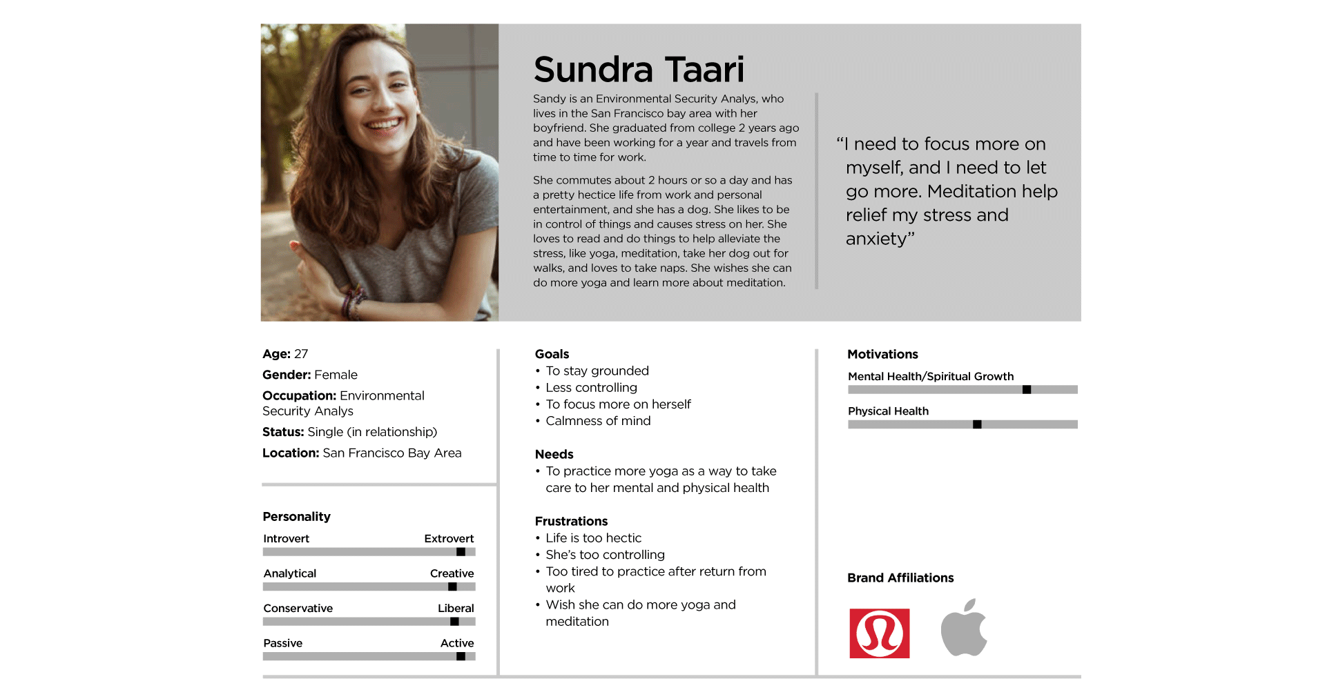 The biggest take away from the user research showed that people understand the benefits but feel that they just don’t have enough time in the day to spare and meditate because their life is too busy. Therefore, this app is focused on offering shorter meditation sessions that’s very simple and easy to use that would delight and provide the best user experience.